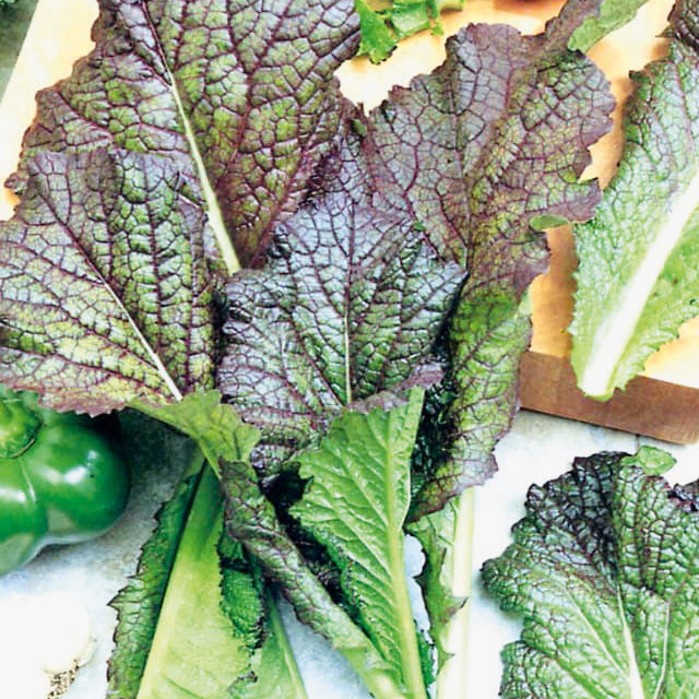 A Japanese type mustard which has large savoyed leaves, purple-red in colour with green undersides. Winter hardy and slow to bolt, use for babyleaf or leave to grow larger leaves and harvest for lightly steaming or stir-fry. Red colour will deepen with cooler temperatures.