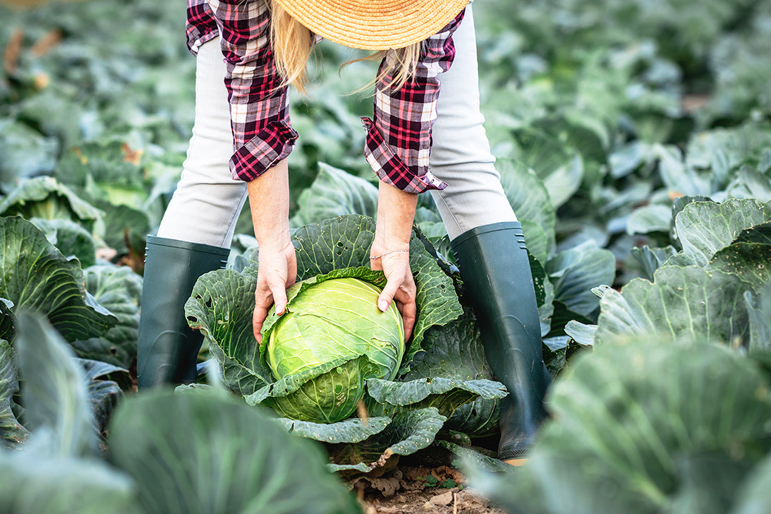 Popular European savoy cabbage with a purple blush to its leaves that's enhanced with c