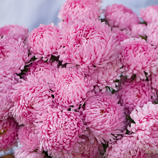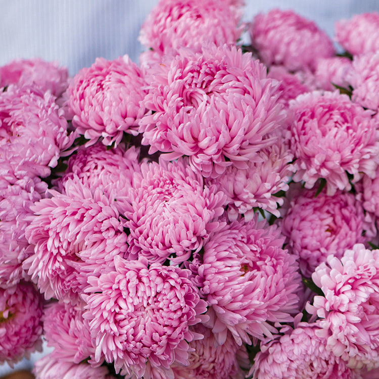 Attractive salmon-pink, peony-type blooms with excellent uniformity. All the elegance of peonies and chrysanthemums in an easy-to-grow annual. Blooms average 5-8cm in diameter with 13–20 stems per plant. Petals are highly curled. Flowers as day length shortens. Long vase life.