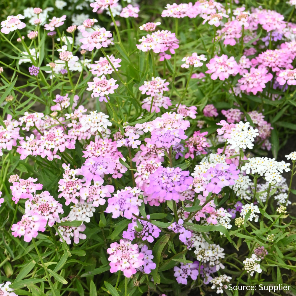 Mound-shaped plants form a blanket of colour including shades of purple, lilac, rose and white. After the flowers have dropped their petals, they leave behind attractive green seedpods that can be used either fresh or dried. Flowers can also be pressed, the colours lasting well. Surface sow.