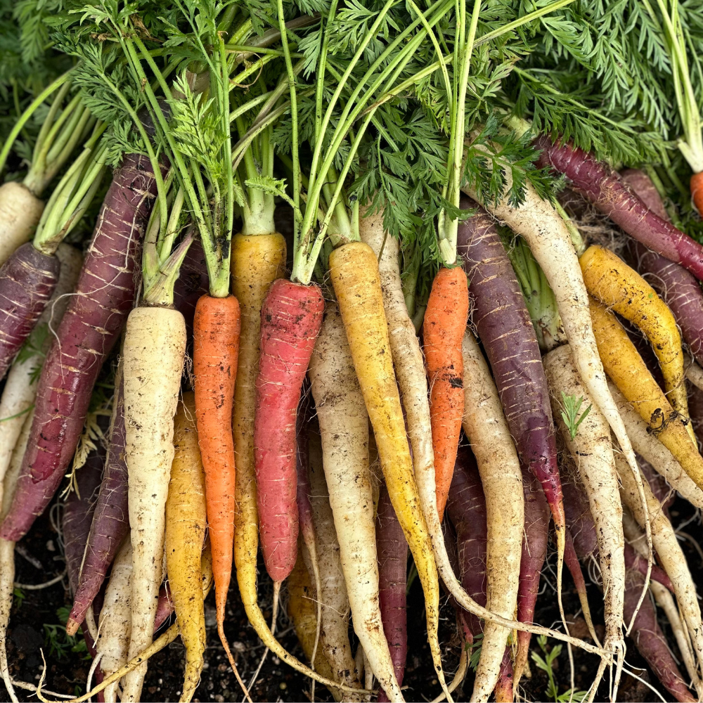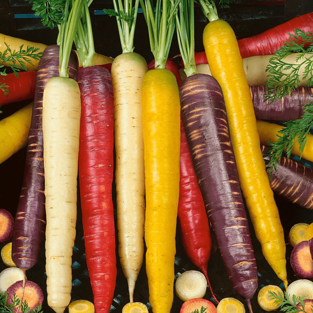 A colourful mixture of hybrid carrots from our Nutri range. High in nutritive value, Imperator carrots are bred to have long and uniform roots. Good harvested as a baby carrot or can be grown for larger, slender roots. Used by professional growers and loved by chefs and home cooks!
