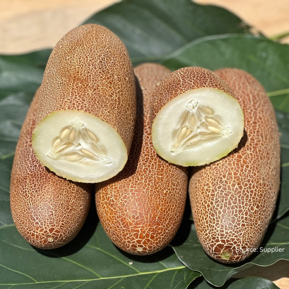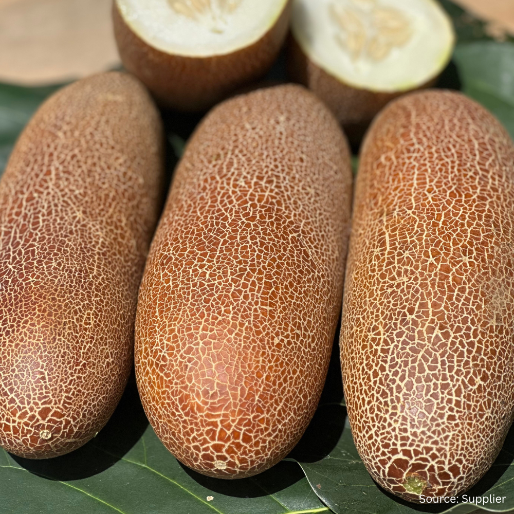 Sweet and juicy, yellow Canary melon with firm orange flesh. When ripe, the skin colour