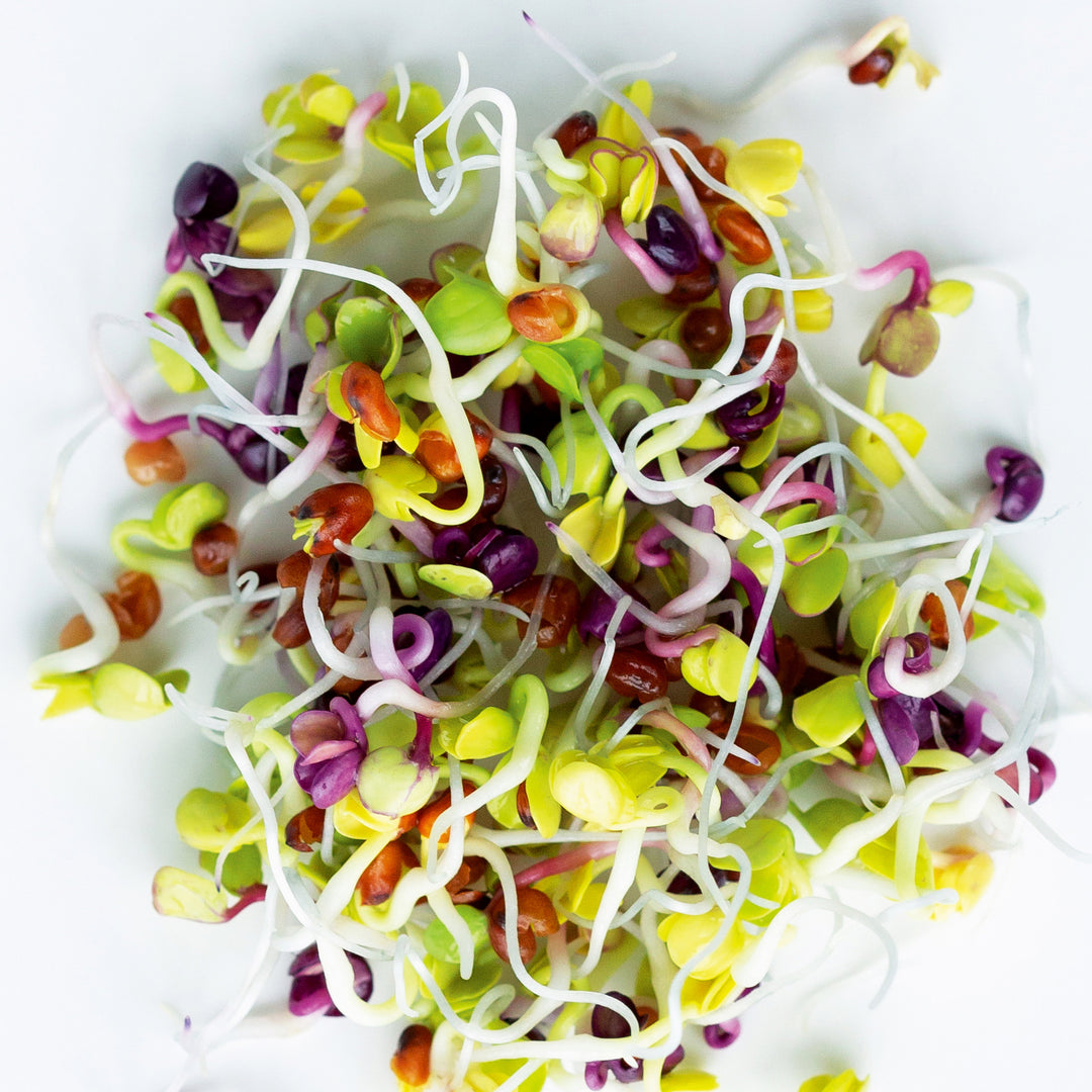 A mix of three different radishes, Rambo, Daikon and China Rose with an intense taste and flavours of radish, mustard and a peppery pungency. Different Asian cultures have cultivated radish seeds for centuries because of their positive effect on health and their delicious flavour. Radish is known to be a superfood with high levels of vitamin C, B, A, E and K, magnesium, manganese, copper and proteins. Radish sprouts contain biologically active compounds called glucosinolates, which break down to form isothiocyanates. Research shows that these compounds may provide powerful cancer-fighting properties.