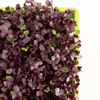 Vivid purple radish, attractive garnish for gourmet salads with its spicy taste. First true leaves are purple in colour but second/third leaves will appear green if left unharvested. Purple stems with purple, heart shaped leaves. Crisp texture with moderate flavour intensity and tastes of radish with delayed pepper pungency. Fast growing.