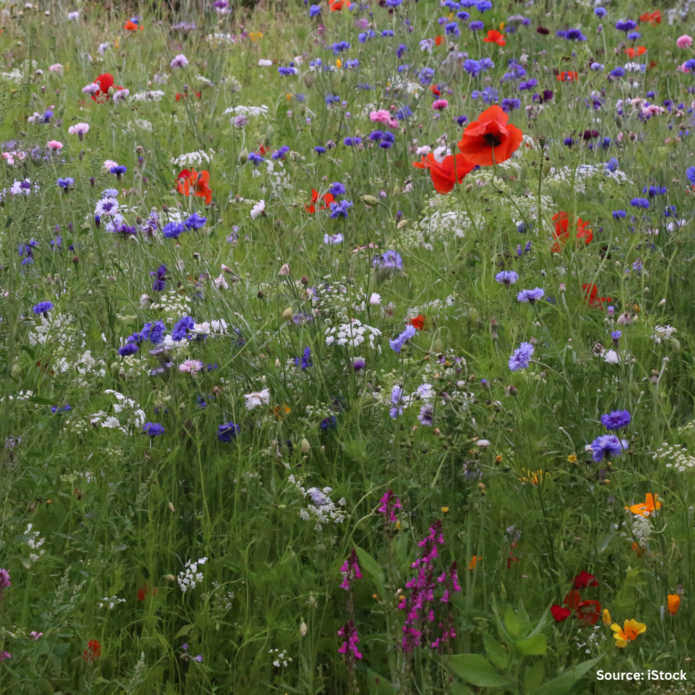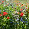 A blend of annuals and perennials. The annuals should self-seed, although it can often help to over-sow the second year to establish the flowers as the dominant species over unwanted weeds.