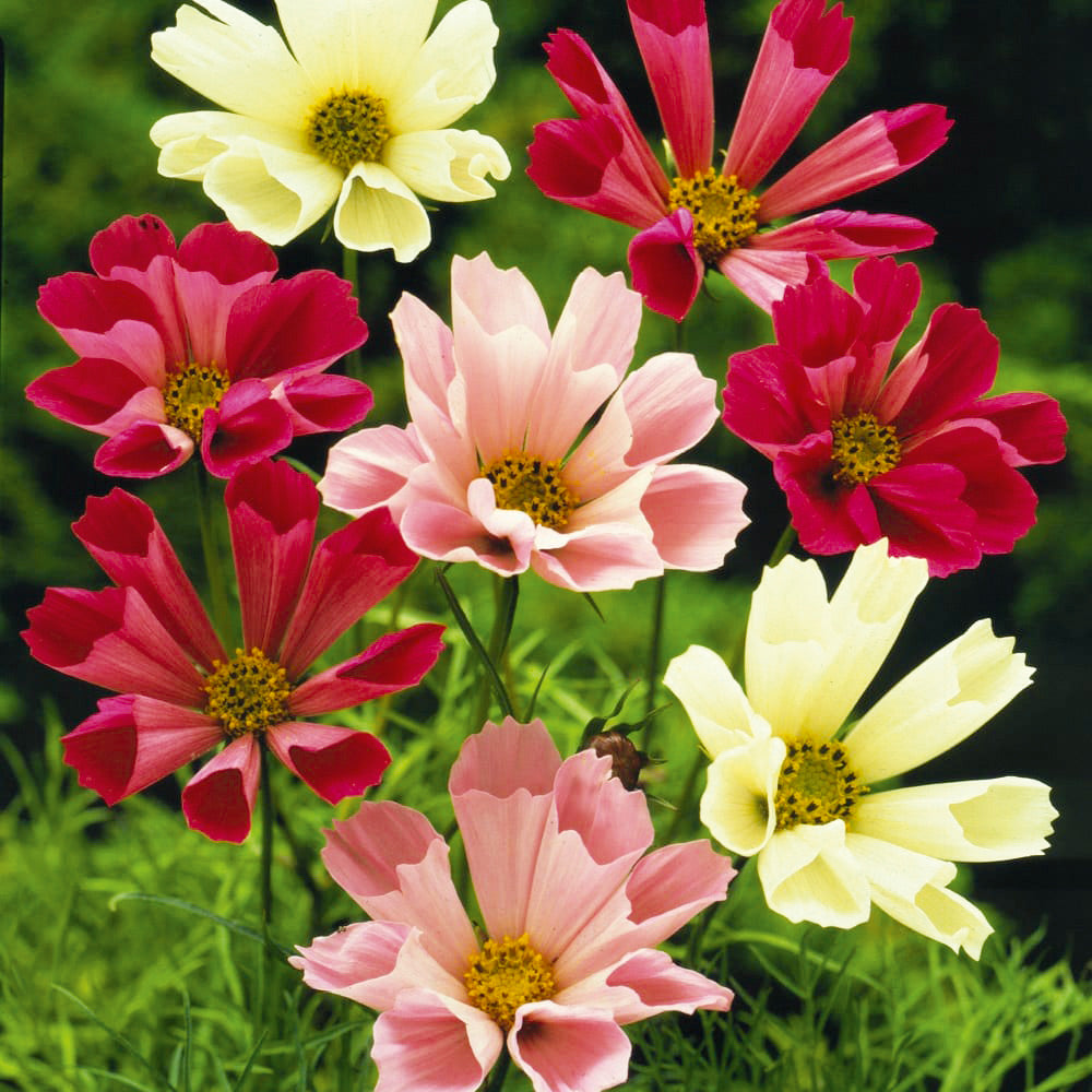 A unique mix of cosmos with tubular fluted petals in an array of colours. Great as a cut flower or for attracting pollinators to your garden, cosmos are easy to grow and will flower over a long period of time if regularly picked or deadheaded.