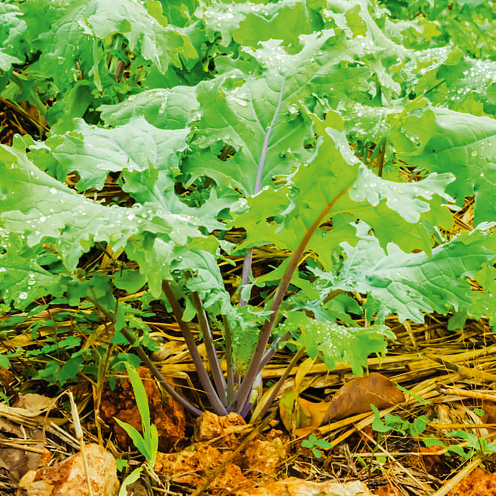 Traditional variety with pretty, wavy-leaved plants that are blue-green in warmer weather but, as temperature drops, stems and leafy veins turn a gorgeous red hue. Succulent, tender and surprisingly sweet even in warmer winters. Versatile, nutritious, cold and heat tolerant.